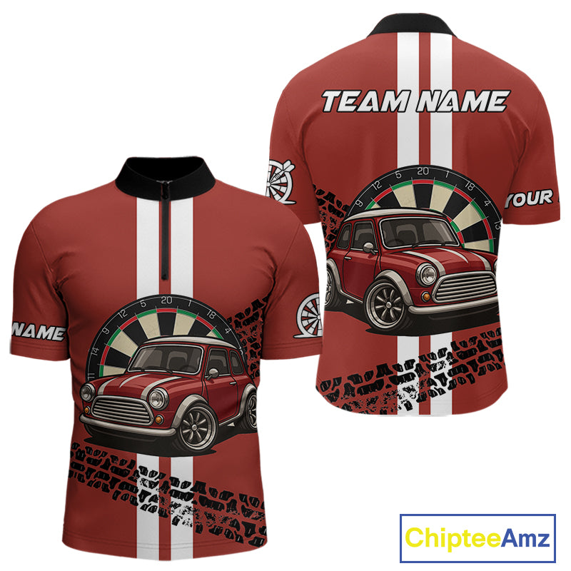 Personalized Red Funny Car Dart Shirts For Men Custom Darts Team Jerseys Polo & Quarter Zip TDM4151