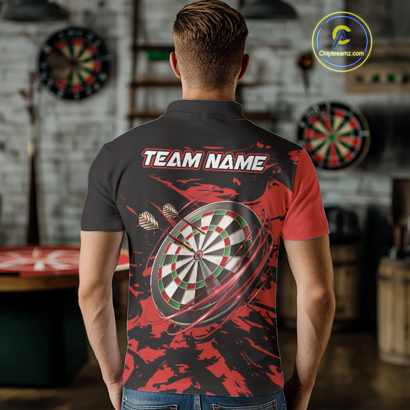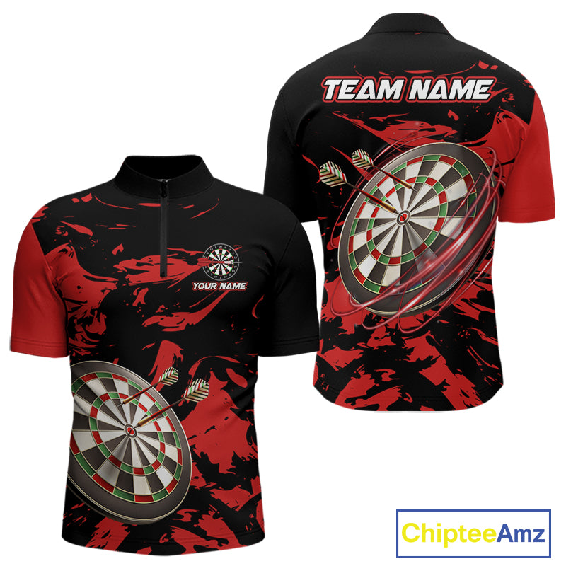 Personalized Black And Red Splash Dart Polo & Quarter Zip Custom Dart Shirt For Men Darts Jersey TDM4168