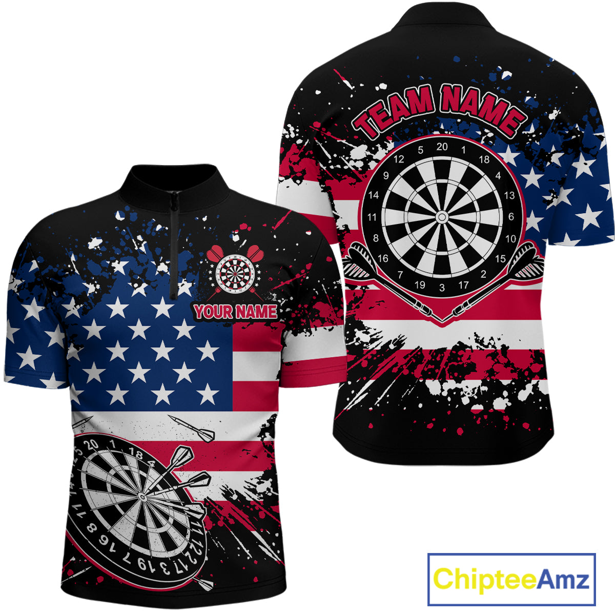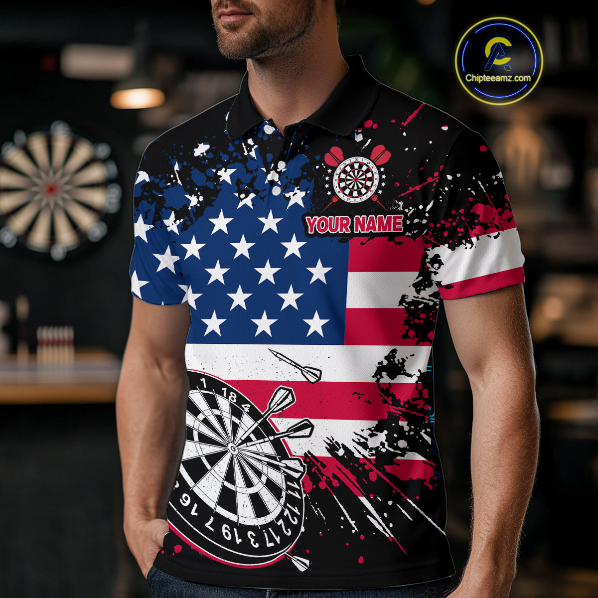 Personalized American Flag Darts Shirt For Men Custom Grunge Paint Splash Patriotic Dart Jersey TDM4171