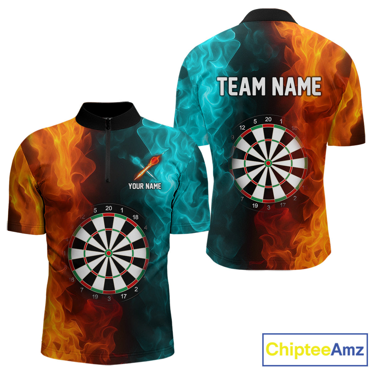 Orange And Turquoise Custom Fire Flame Darts Shirt For Men, Personalized Dart Team Jersey Outfit TDM4208