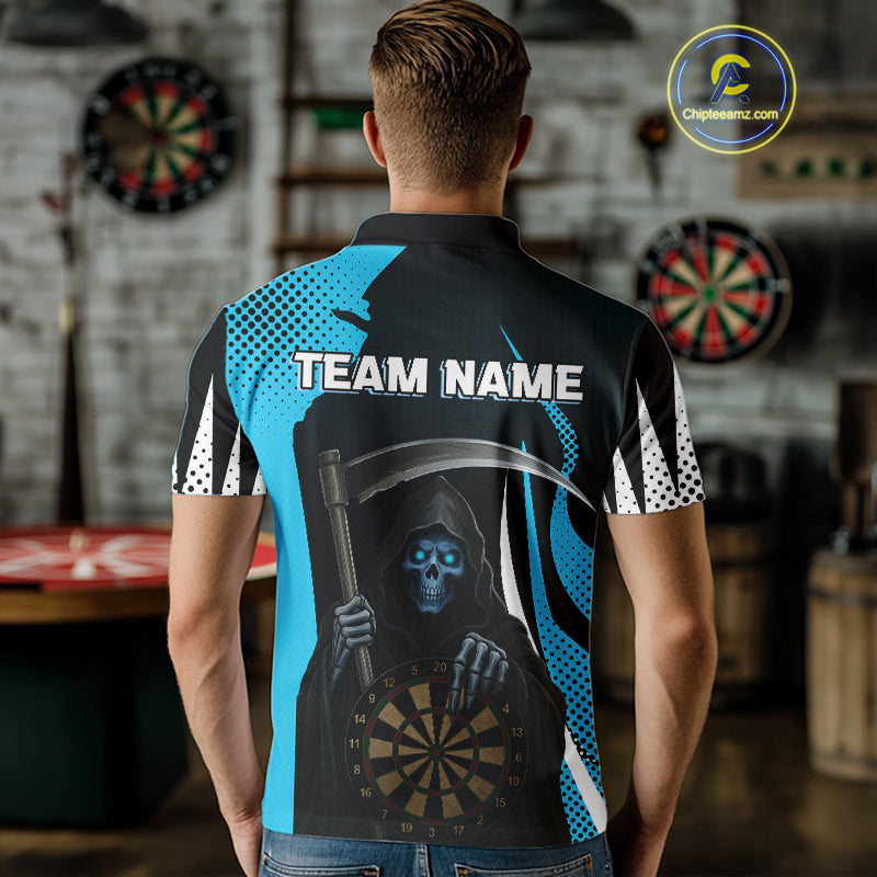 Personalized Blue Grim Reaper Dart Shirt For Men Custom Skull Dart Jerseys Team Polo & 1/4 Zip TDM4210