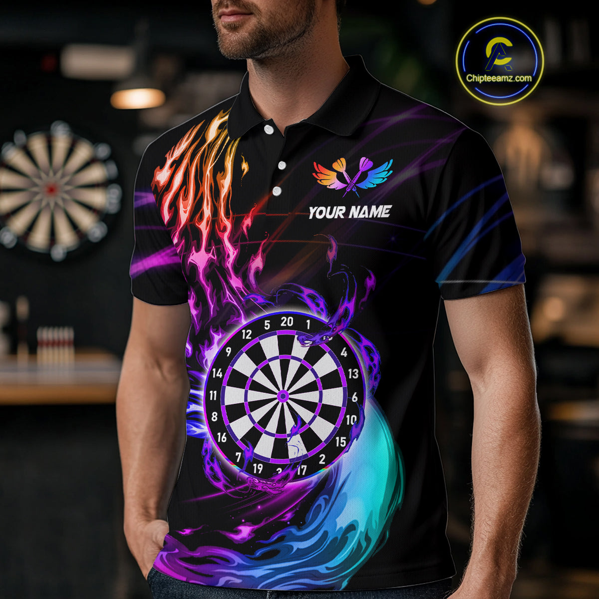 Personalized Purple Blue Dartboard Flame Dart Shirt For Men Custom Darts League Team Jerseys TDM4216