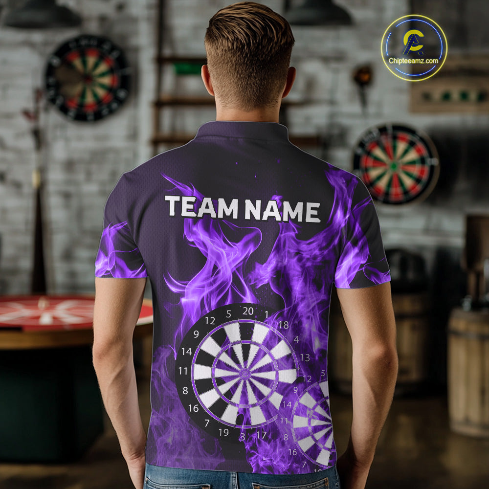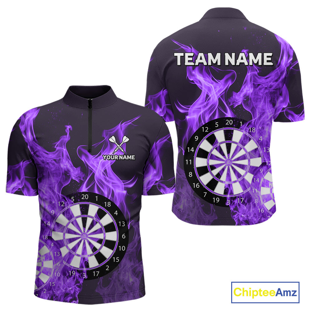Purple Flaming Dartboard Darts Polo & Quarter Zip Custom Dart Shirts For Men Team Dart Jerseys TDM4230