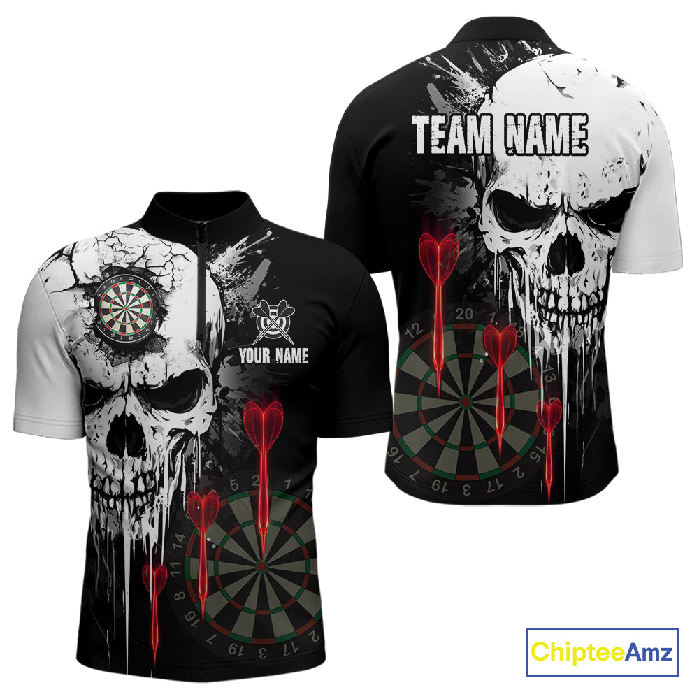 Personalized Grunge Skull Arrow Darts Shirt For Men Custom Darts Jersey Team Polo & 1/4 Zip |Red TDM4247