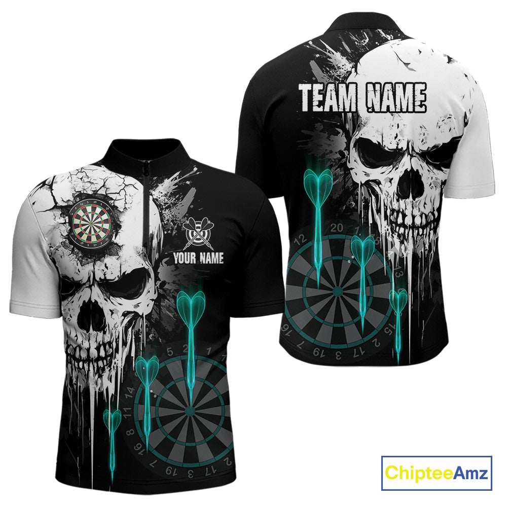 Personalized Grunge Skull Arrow Darts Shirt For Men, Darts Jersey Team Polo & 1/4 Zip |Turquoise TDM4248