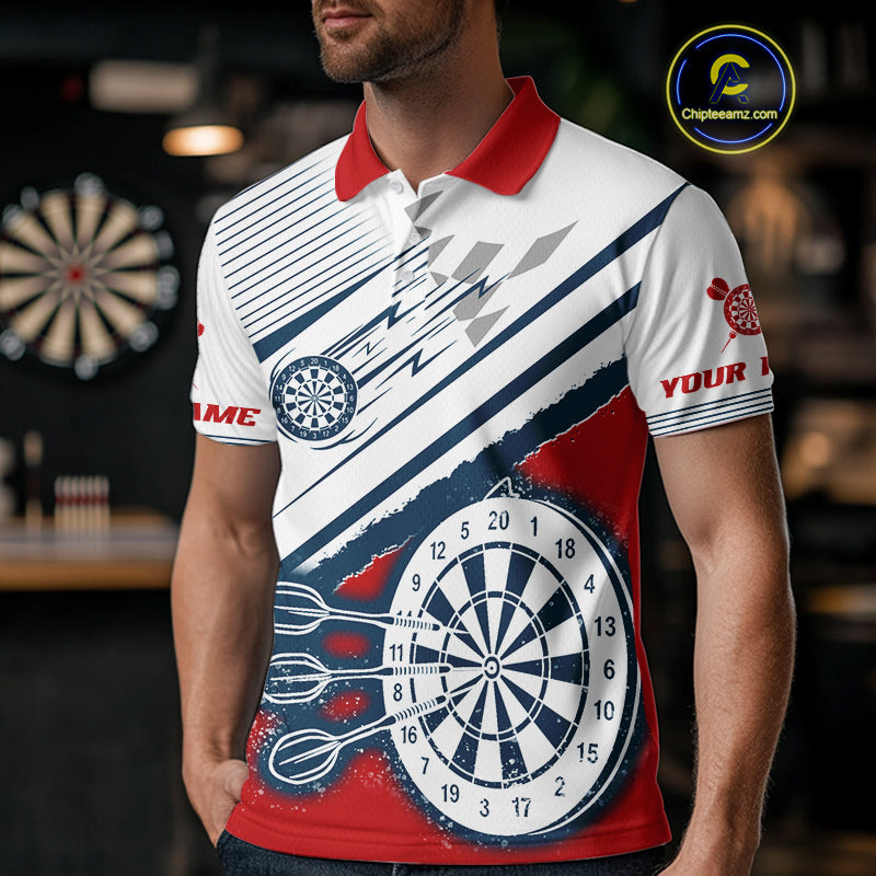 Personalized Red, White & Navy Darts Shirt For Men Custom Sport Darts Team Jerseys Polo & 1/4 Zip TDM4250
