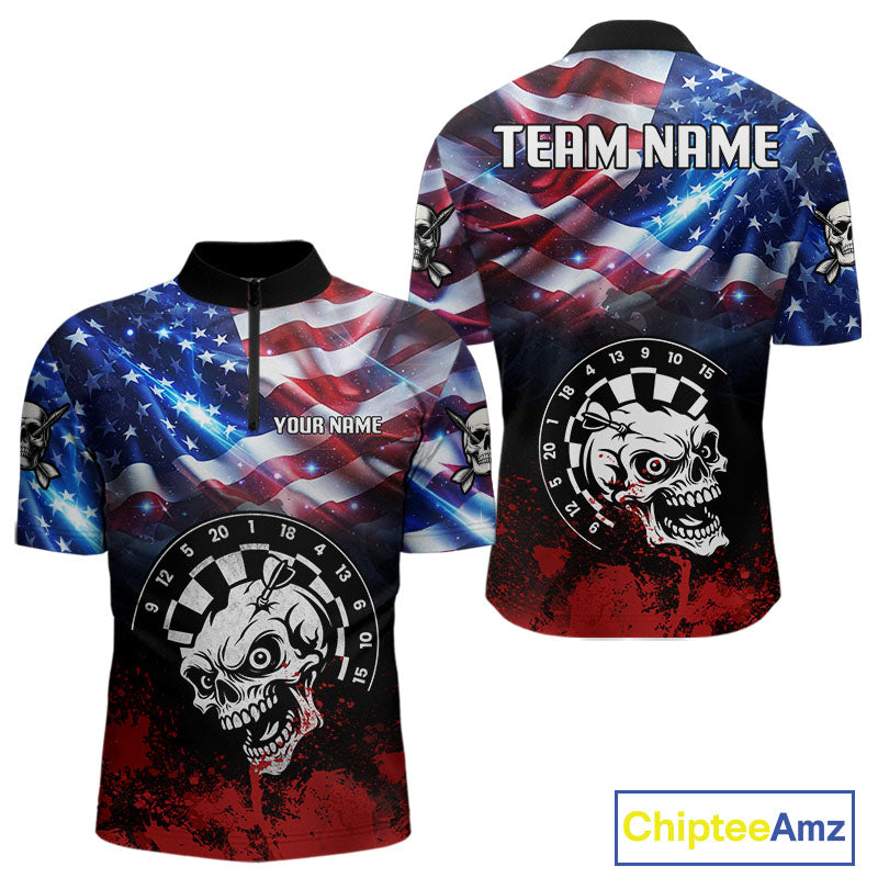 Personalized American Flag Funny Skull Darts Shirt For Men Custom Patriotic Darts Team Jerseys TDM4262