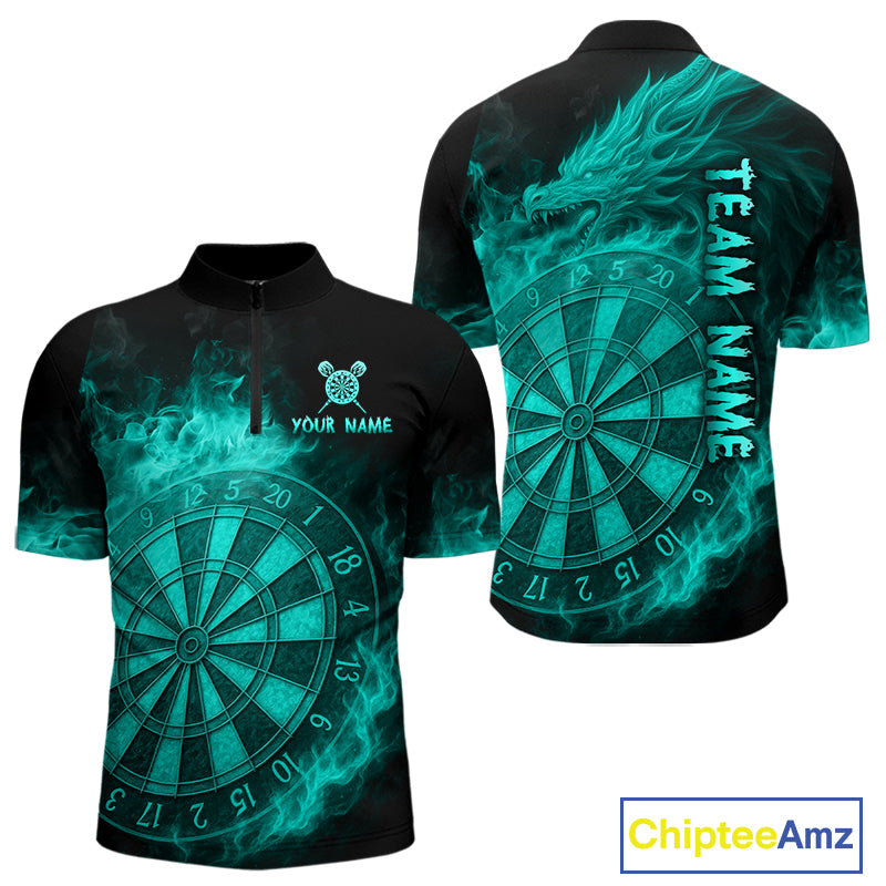 Personalized 3D Turquoise Dartboard Dragon Flame Dart Shirts For Men Custom Darts Team Jerseys TDM4313