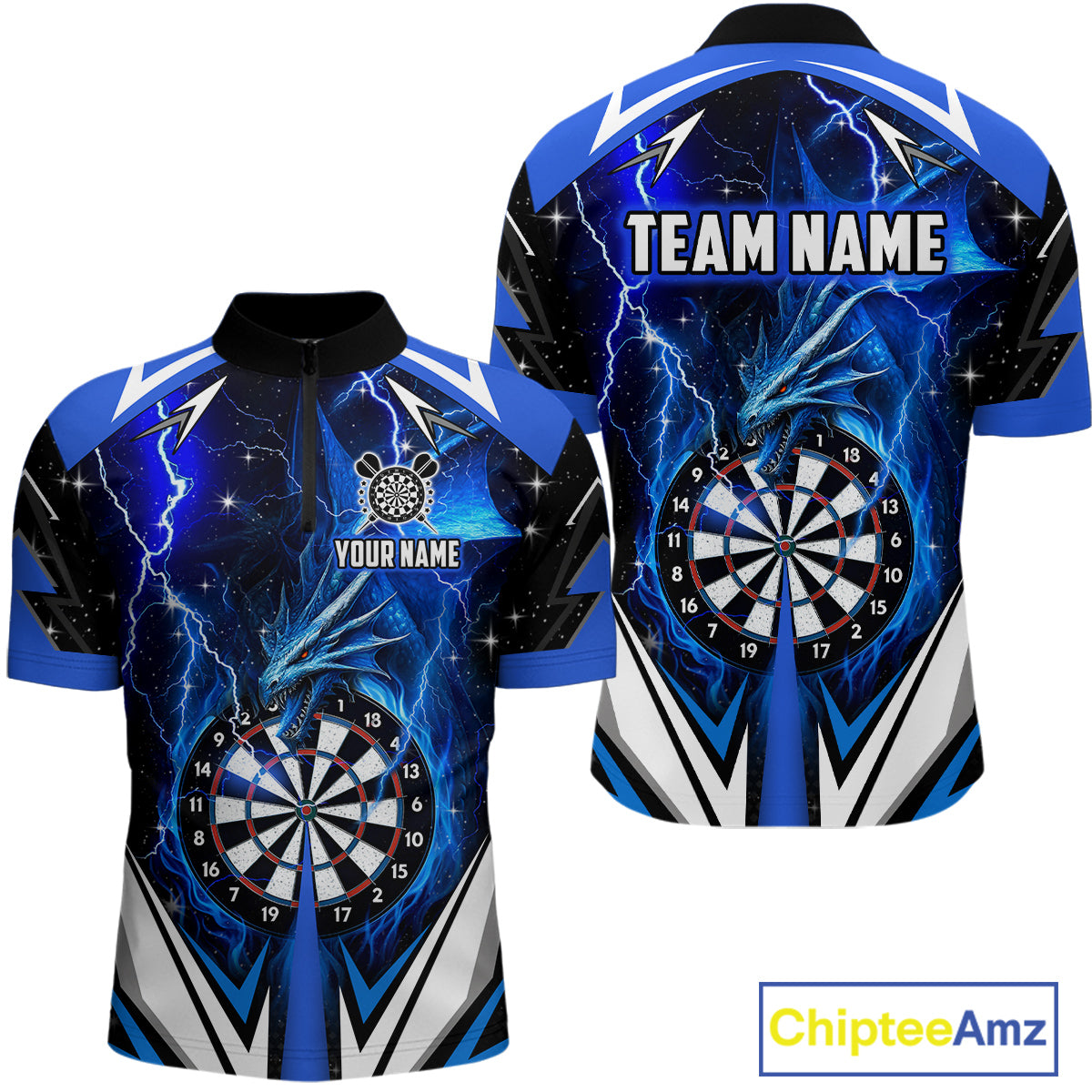 Blue Darts Jerseys Custom Thunder Lightning Dragon Dart Shirt Team Polo & Quarter Zip For Men TDM4314