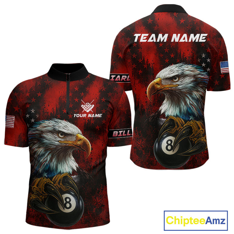 Black And Red American Flag Eagle Billiard Shirt For Men Custom Claw 8 Ball Pool Team Jersey TDM4317