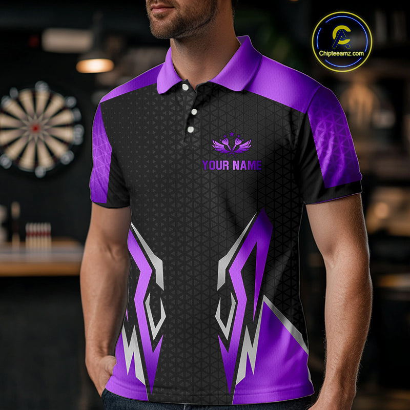Black And Purple Funny Crown Darts Shirt For Men Custom Darts Jerseys Team Polo & Quarter Zip TDM4326