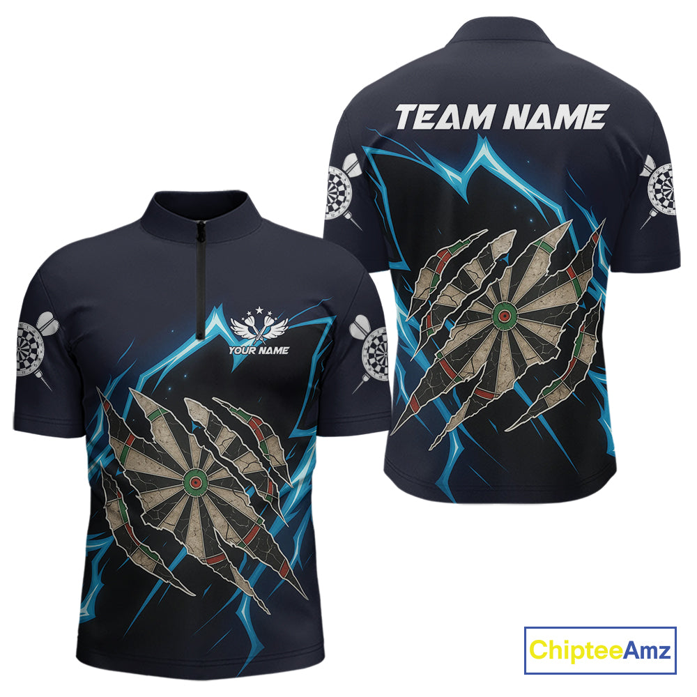 Personalized Thunder Lightning Dark Navy Darts Shirt For Men Custom Funny Darts Team Jerseys TDM4336