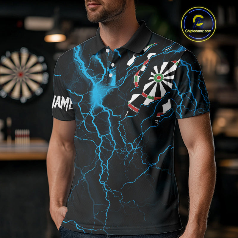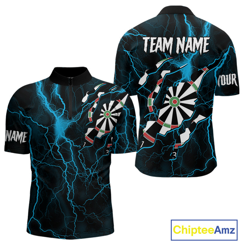 Personalized Blue Thunder Lightning Dart Shirt For Men Custom Darts League Jersey Polo & 1/4 Zip TDM4352
