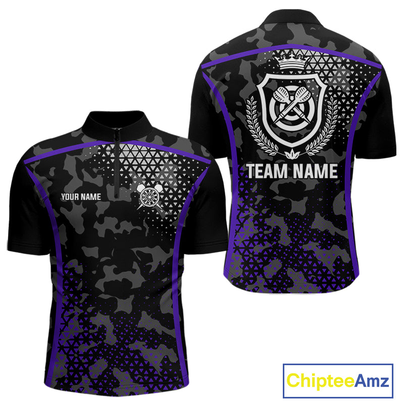 Black Purple Camo Darts Shirt With Pocket Option For Men Custom Dart Jersey TDM4365