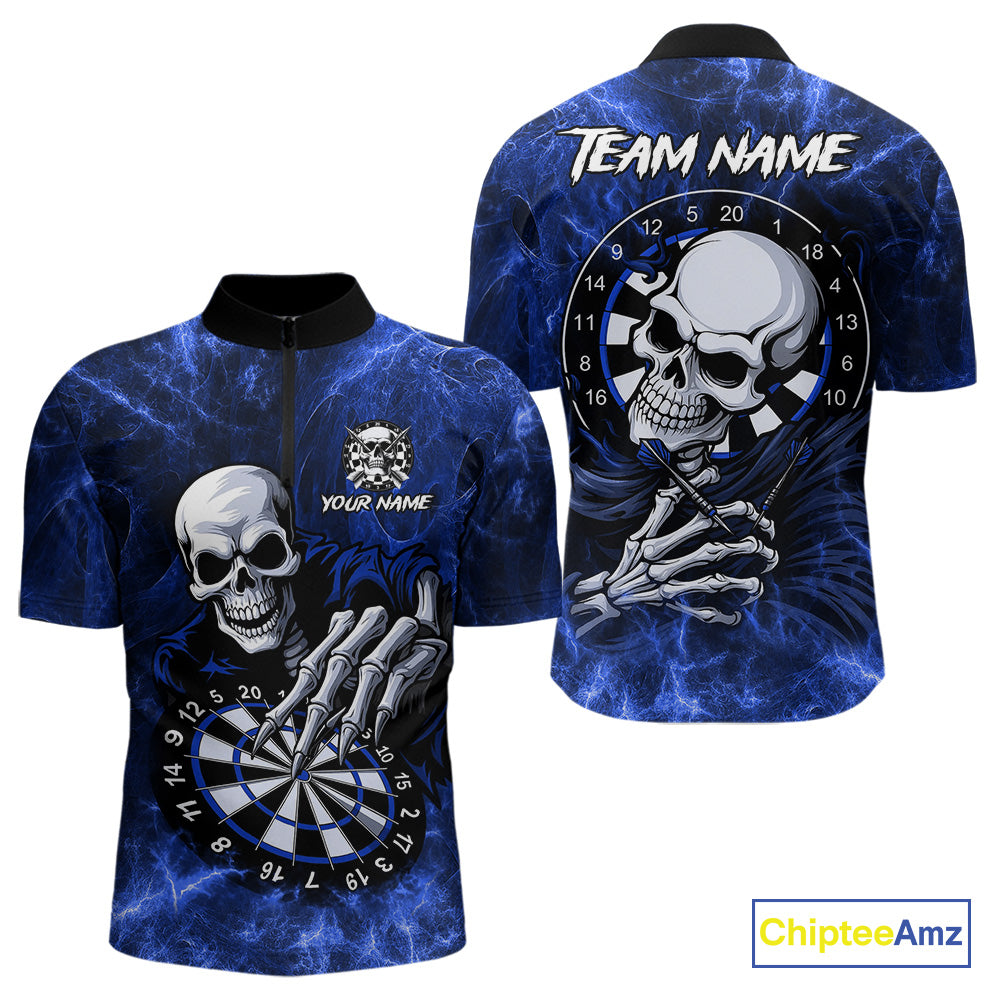 Personalized Blue Funny Skeleton Darts Shirt For Men Custom Skull Darts League Team Jersey TDM4397
