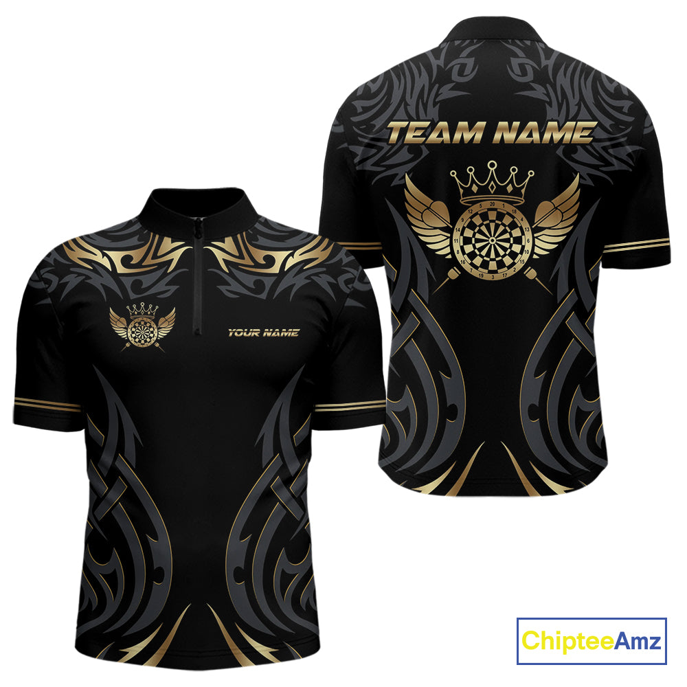Black And Gold Dartboard Crown Wings Custom Darts Shirt For Men, Darts Team Jerseys Polo & 1/4 Zip TDM4420