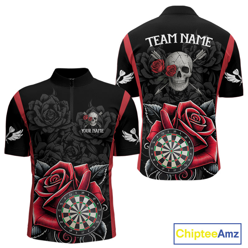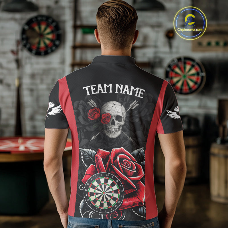 Black And Red Dartboard Roses And Skull Darts Shirt For Men Custom Darts Jersey Outfit, Dart Gift TDM4433