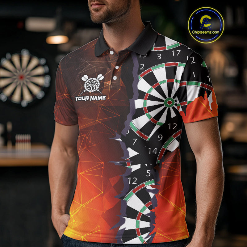 Personalized Fiery Orange Dartboard Crack Darts Shirt For Men, Funny Darts Jersey Polo & 1/4 Zip TDM4449
