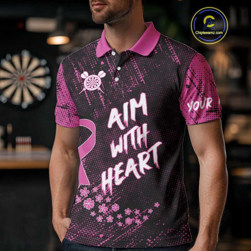 Aim With Heart Pink Ribbon Darts Shirt For Men Custom Breast Cancer Awareness Darts Jersey TDM4469