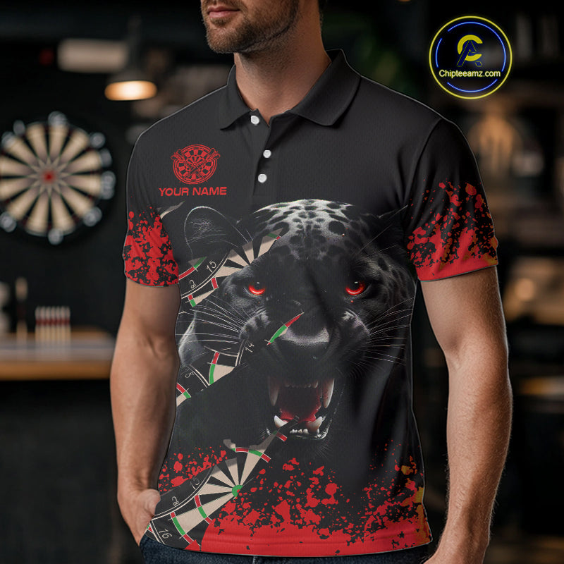 Grunge Black And Red Panther Dart Shirt For Men Custom Dart Jersey Team Polo & Quarter Zip TDM4485