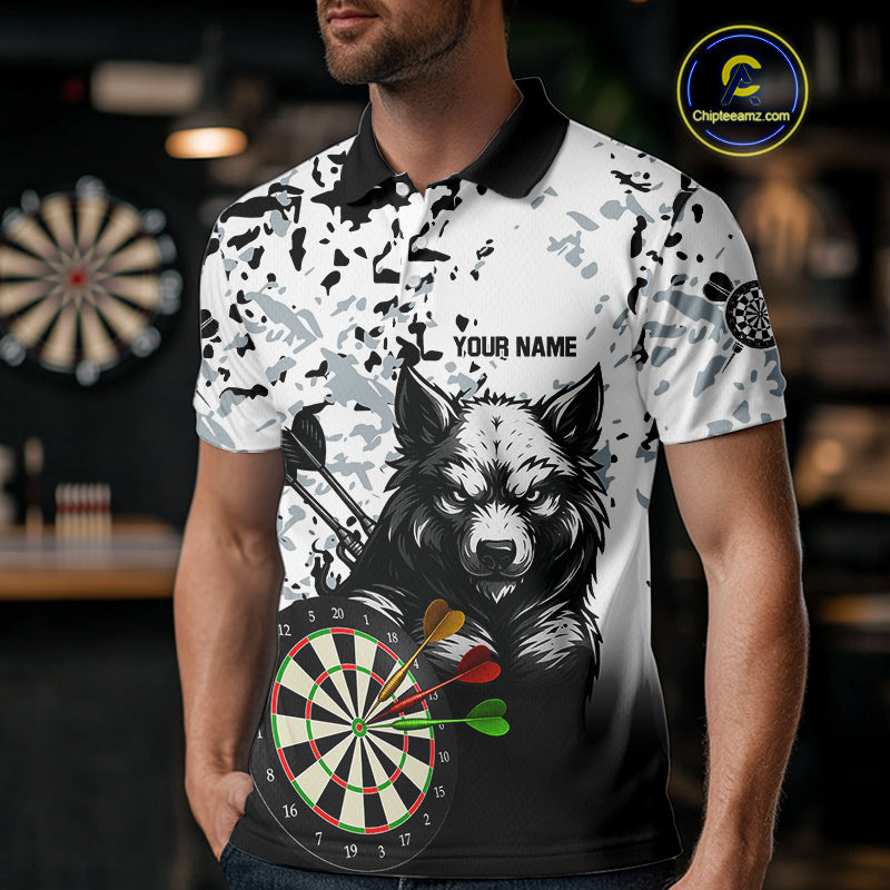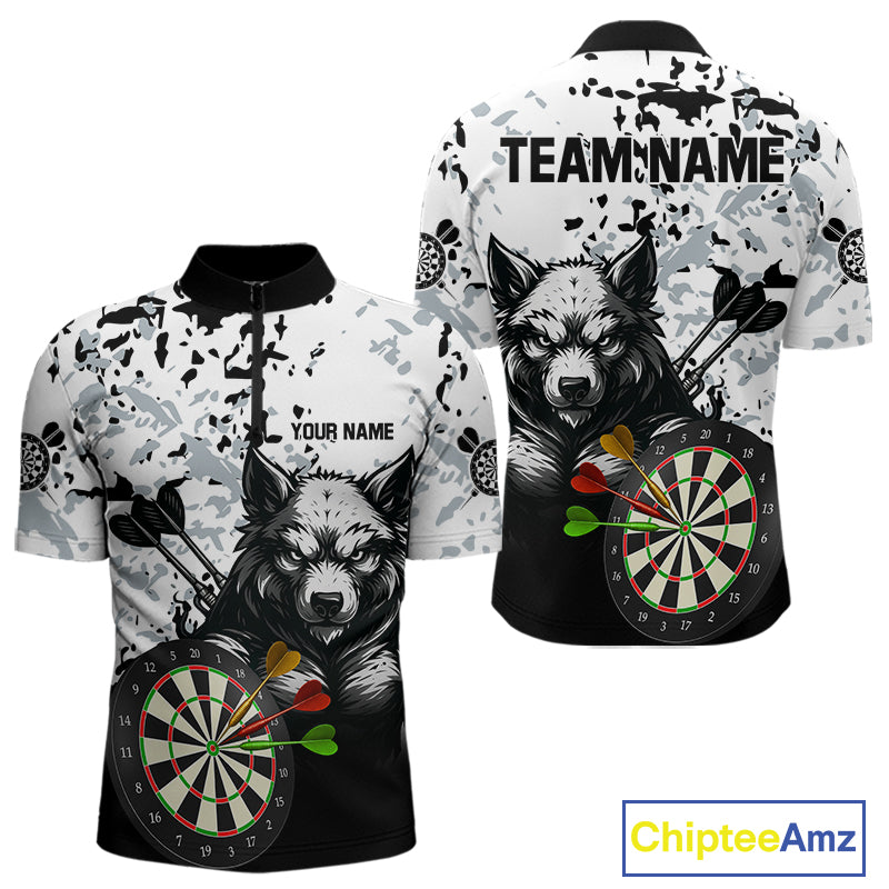 Personalized Grunge White Black Funny Wolf Darts Shirt For Men Custom Team Darts Jersey Outfit TDM4494