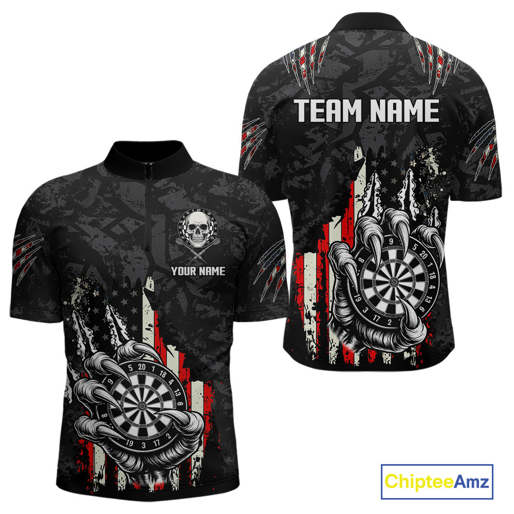 Funny Claw Tearing US Flag Darts Shirt For Men Custom Patriotic Skull Darts Team Jerseys TDM4503