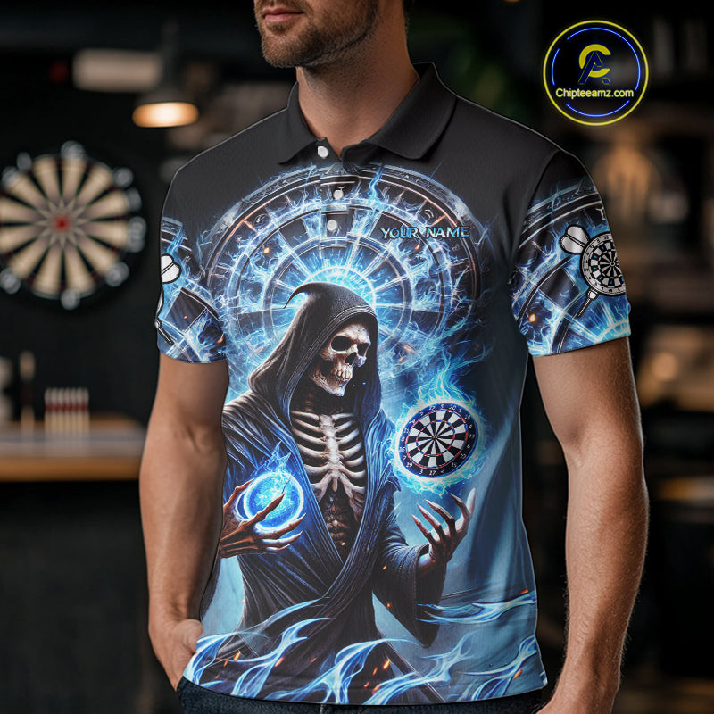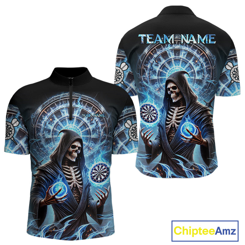 Funny Blue Icy Dartboard Grim Reaper Shirt Custom Darts Jersey Team Polo & 1/4 Zip For Men TDM4527