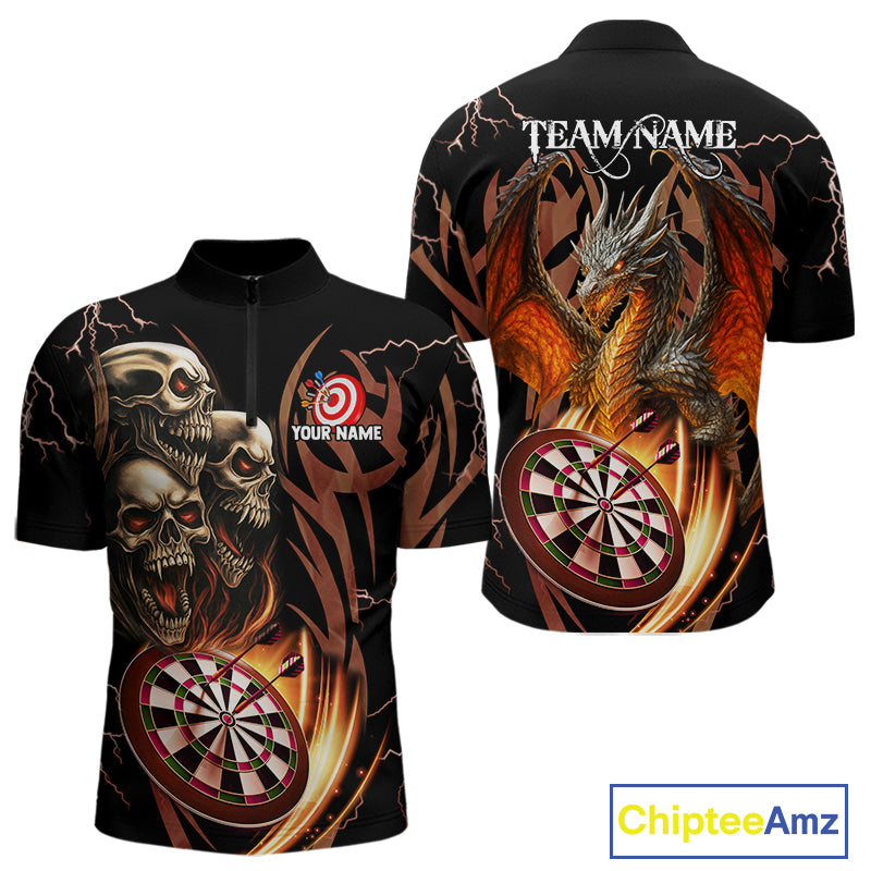 Personalized Skull & Dragon Darts Shirt For Men Custom Lightning Dartboard Team Jersey |Orange TDM4535