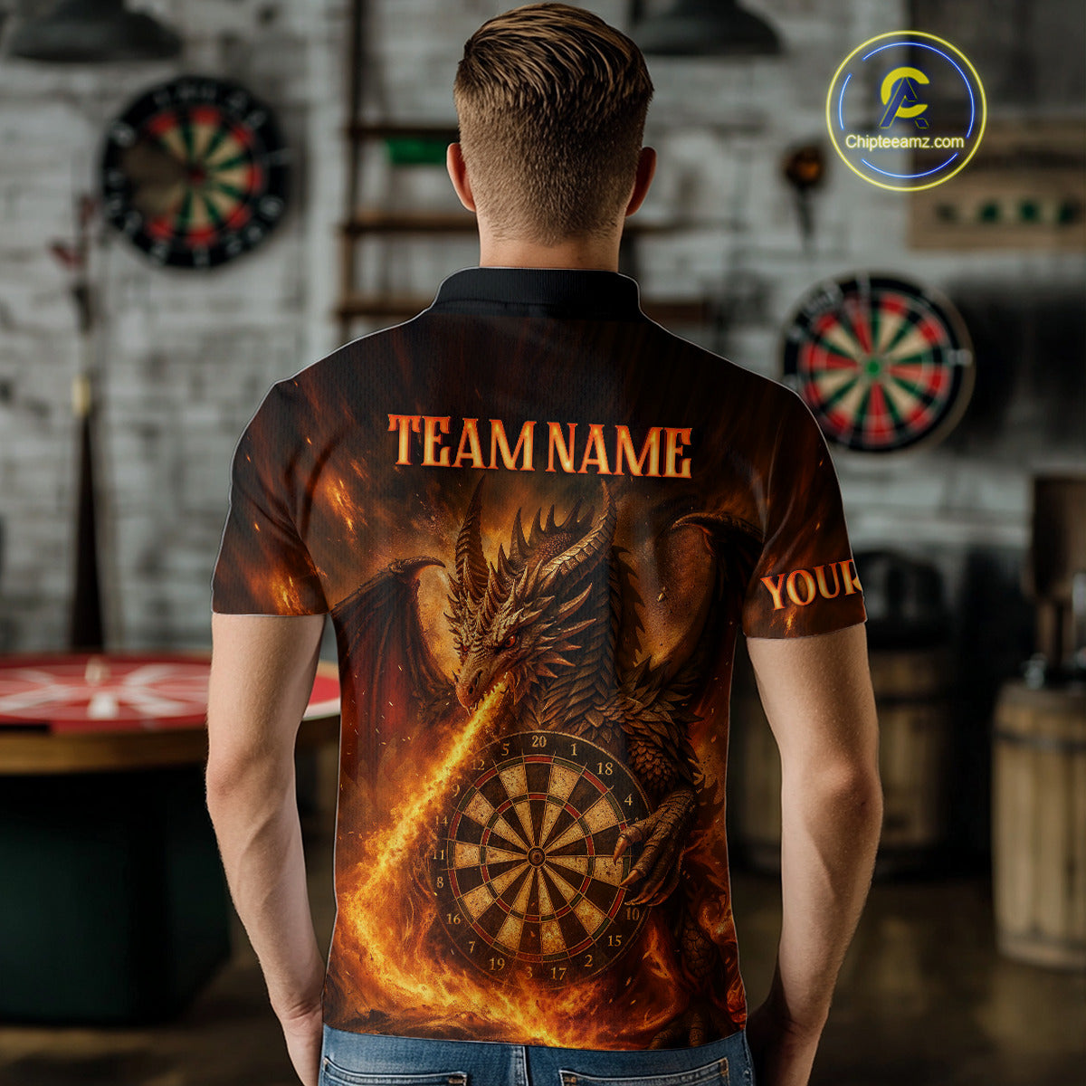 Orange Flaming Dragon Darts Jersey For Men Custom Polo & Quarter Zip Darts League Team Shirt TDM4555