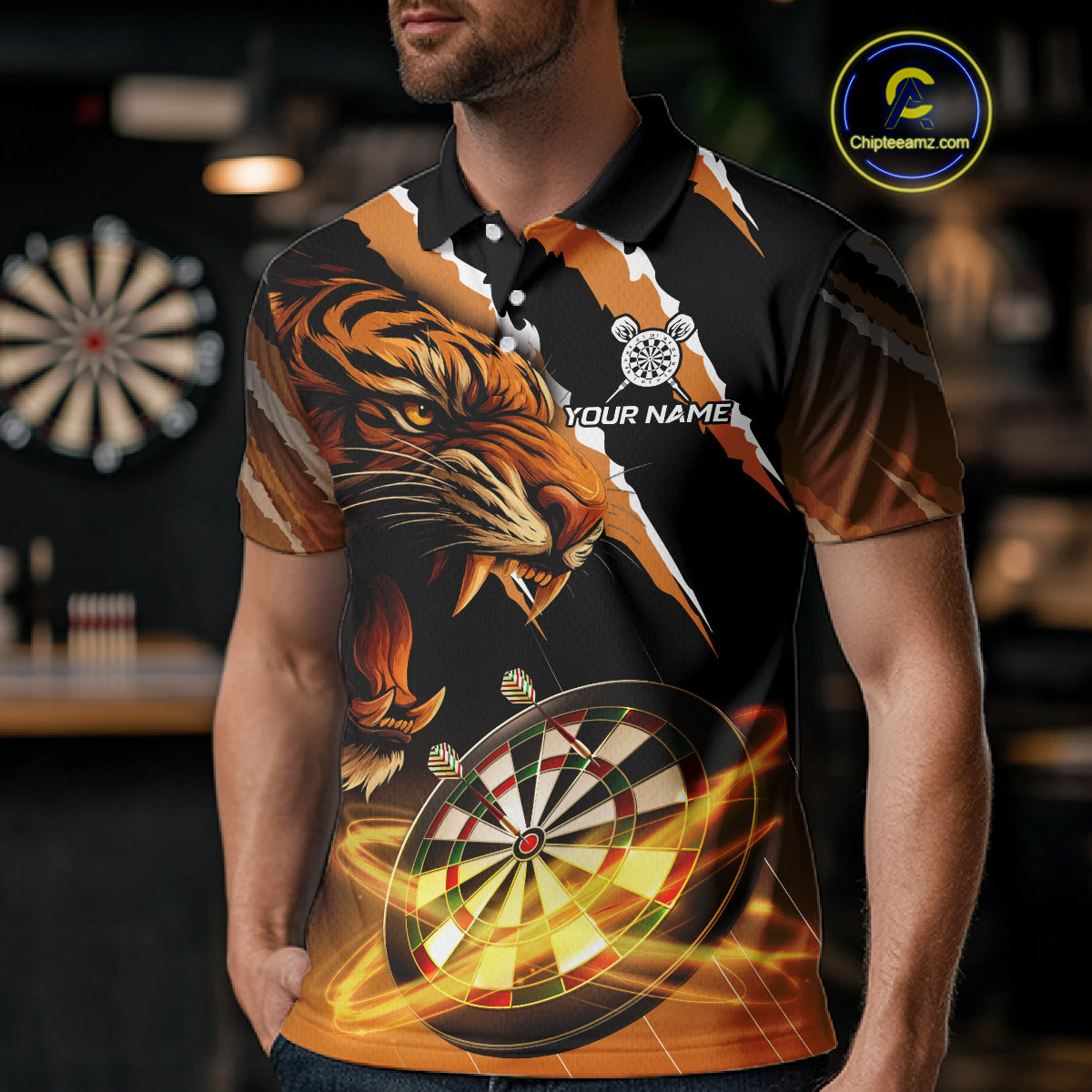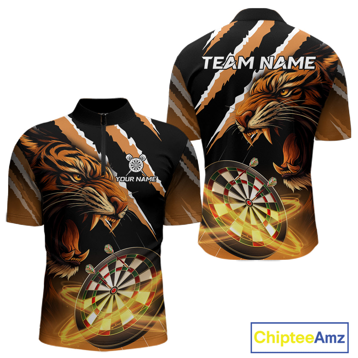 Custom Black And Orange Tiger Darts Shirt For Men Custom Darts Jersey Team Polo & Quarter Zip TDM4568