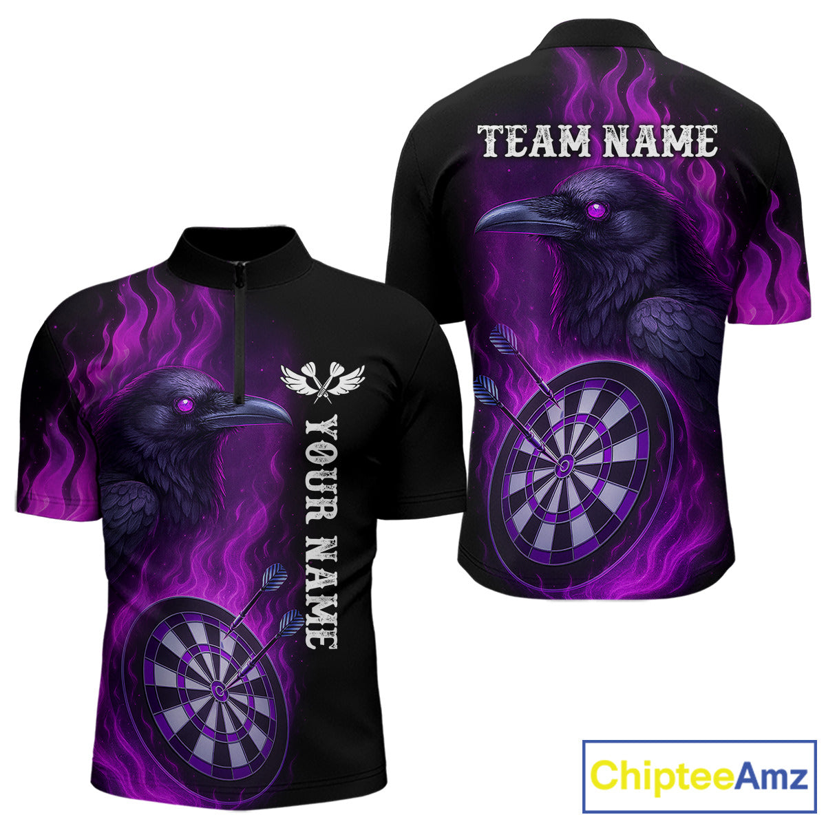 Black And Purple Flame Raven Darts Shirt For Men Custom Halloween Darts Team Jersey Outfit TDM4577