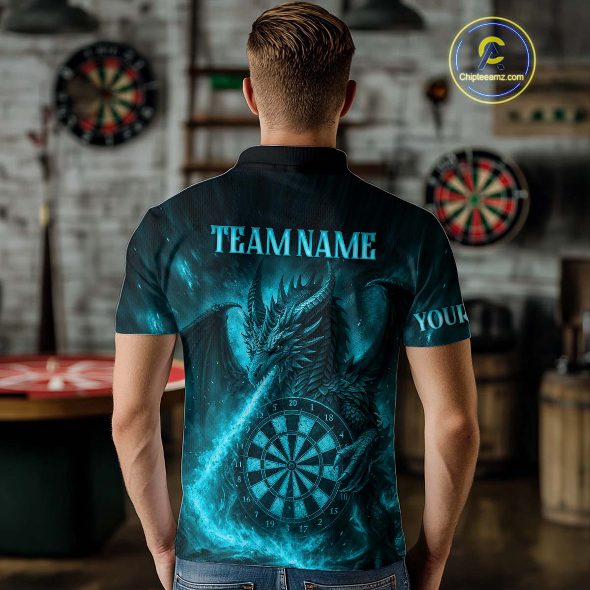 Turquoise Flaming Dragon Darts Jersey For Men Custom Polo & Quarter Zip Darts League Team Shirt TDM4587