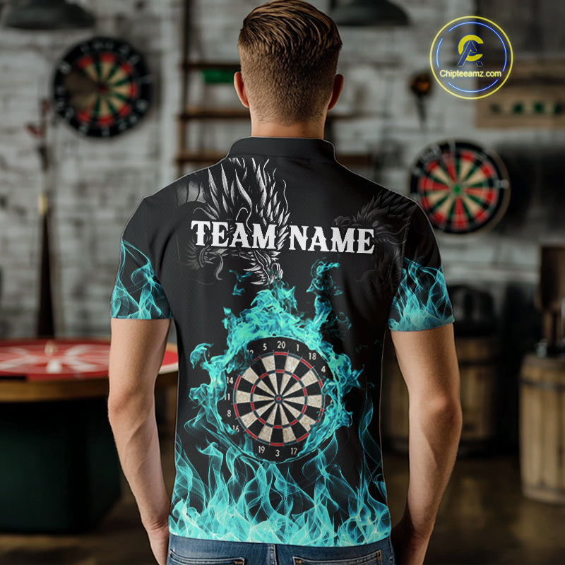 Personalized Turquoise Flaming Dragon Darts Shirt For Men Custom Darts Team Jersey Polo & 1/4 Zip TDM4592