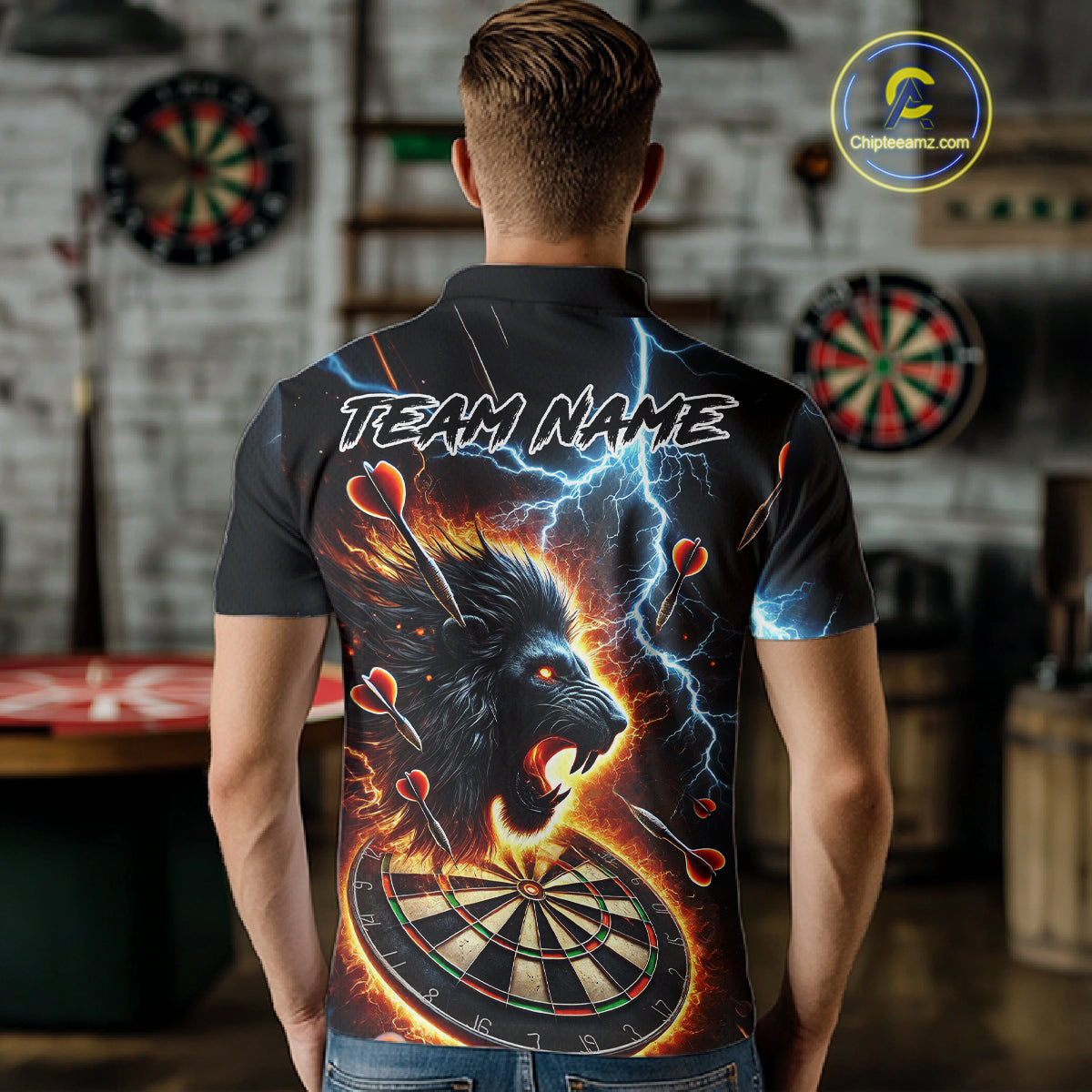 Personalized Thunder Lightning Lion Darts Shirt For Men Custom Darts League Jersey Polo & 1/4 Zip TDM4619