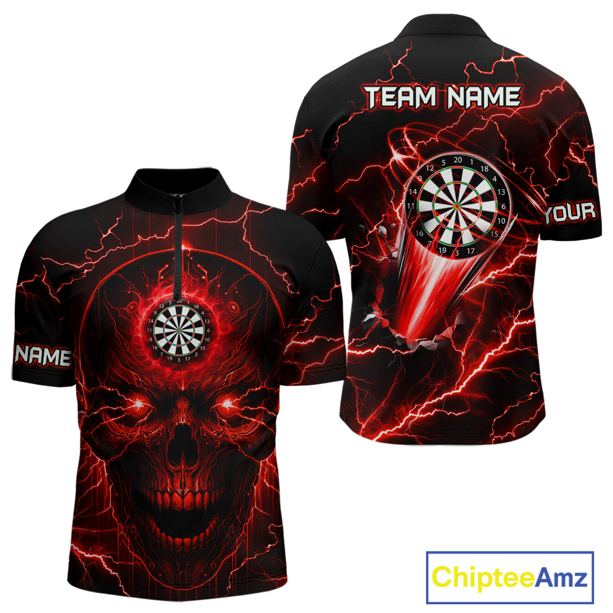 Personalized Red Darts Skull Shirt For Men Custom Polo & 1/4 Zip Lightning Thunder Darts Jersey TDM4621