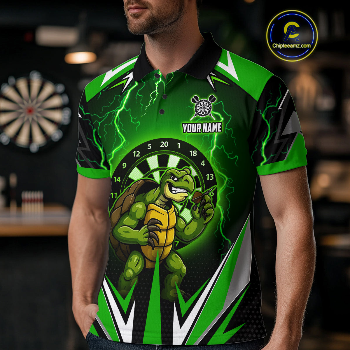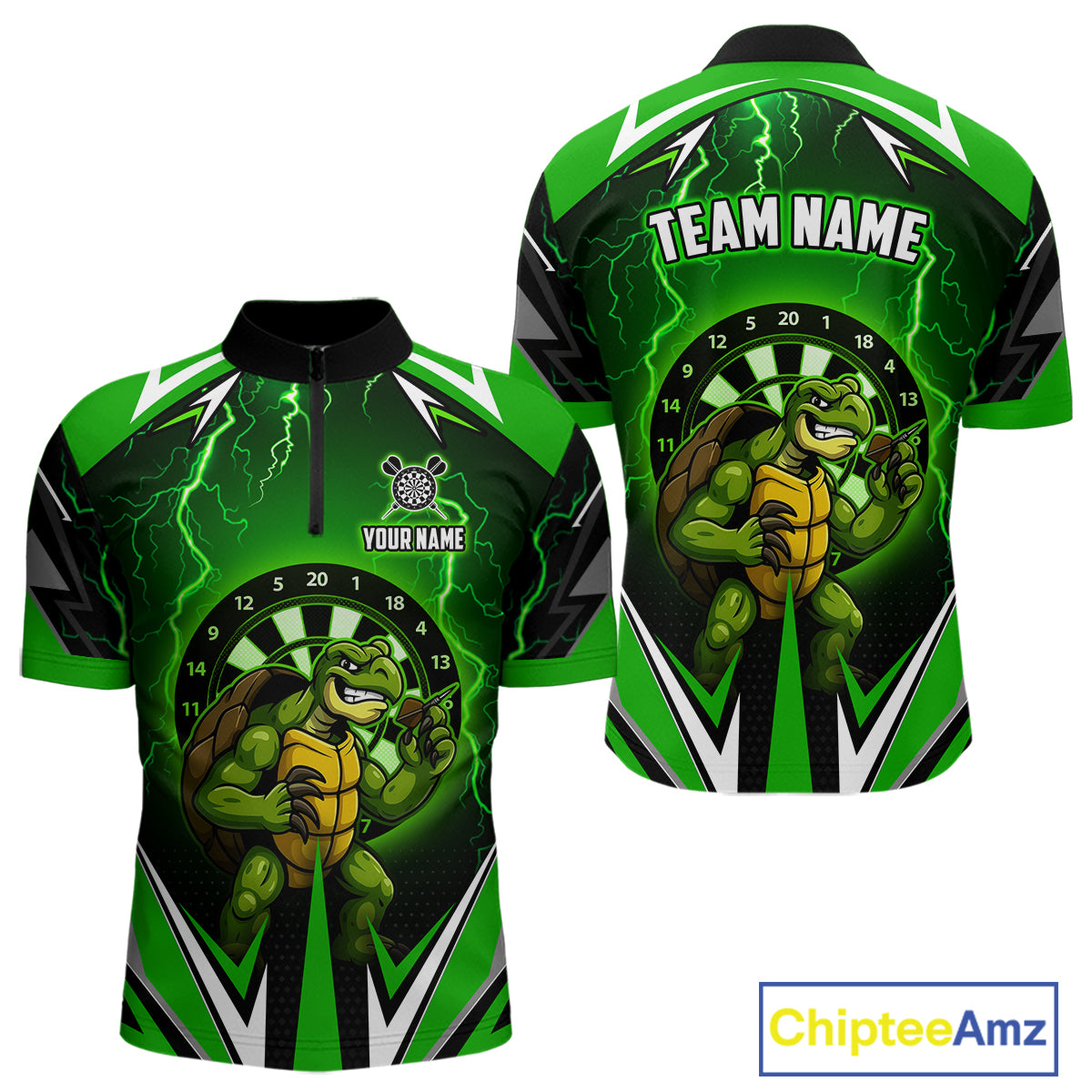 Personalized Funny Turtle Darts Shirt For Men Custom Thunder Lightning Green Darts Team Jerseys TDM4664