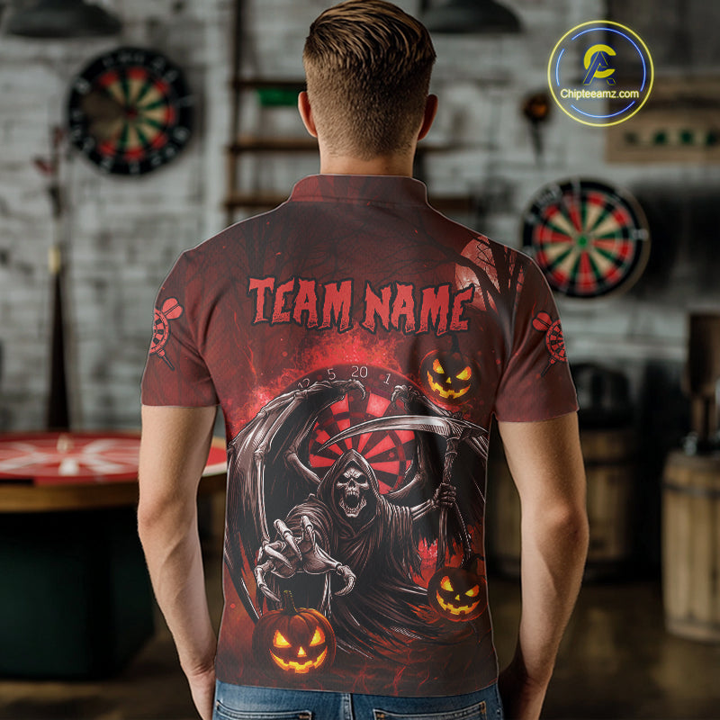 Funny Red Grim Reaper Halloween Darts Shirt For Men Custom Darts Jersey Team Polo & Quarter Zip TDM4665