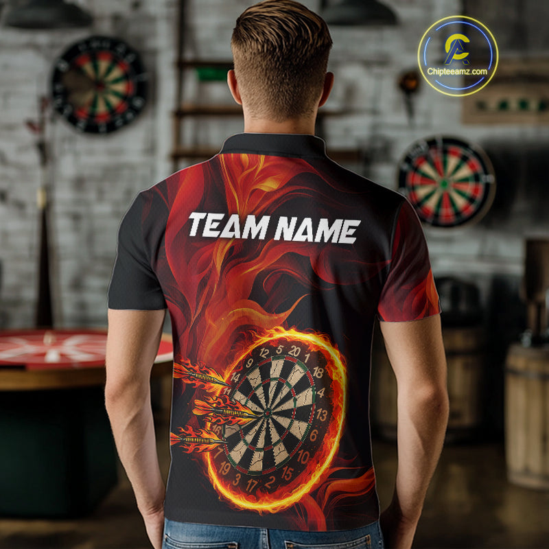 Red Flaming Dartboard Shirt For Men Custom Fire Darts Jersey Polo & Quarter Zip Team Uniform TDM4675