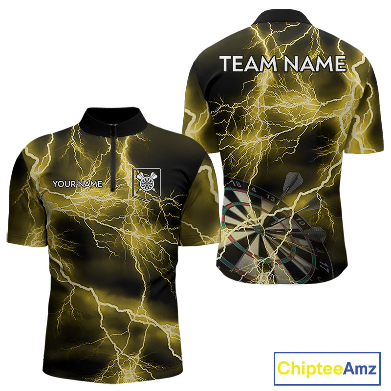 Thunder Lightning Yellow Darts Shirt With Pocket For Men Custom Dart Jersey TDM4695
