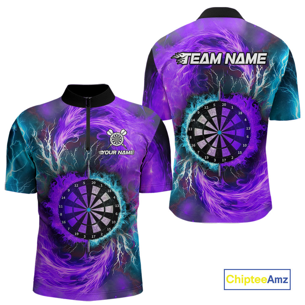 Blue And Purple Flame Lightning Darts Shirt For Men Custom Darts Team Jersey Polo & Quarter Zip TDM4701