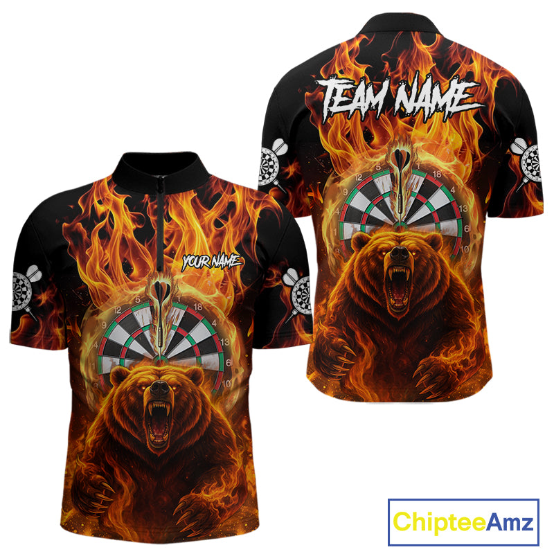 Personalized Orange Flaming Bear Darts Shirt For Men Custom Fire Darts Jersey Team Polo & 1/4 Zip TDM4730