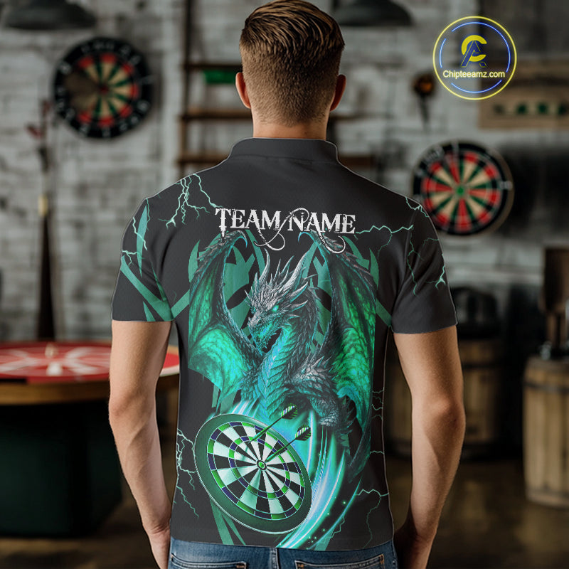 Personalized Skull & Dragon Darts Shirt For Men Custom Lightning Dartboard Team Jersey |Turquoise TDM4778