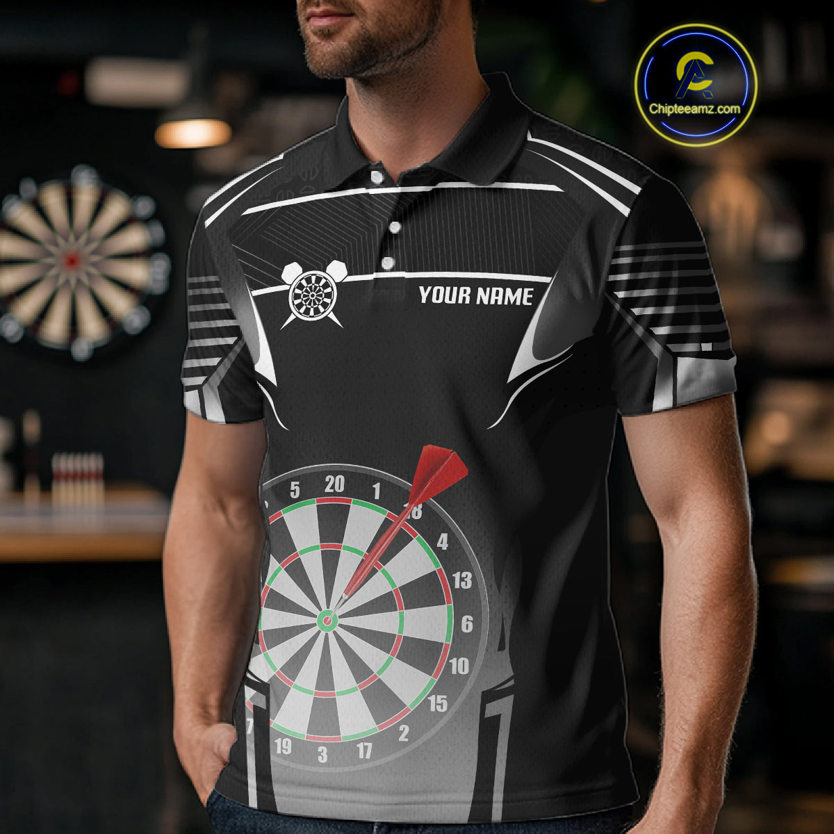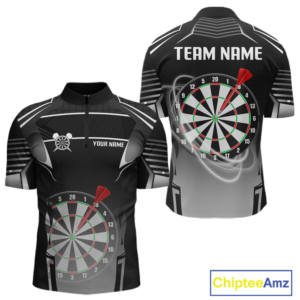 Black And White Dartboard Lights Custom Darts Polo & Quarter Zip For Men, 3D Darts Team Jersey TDM4802