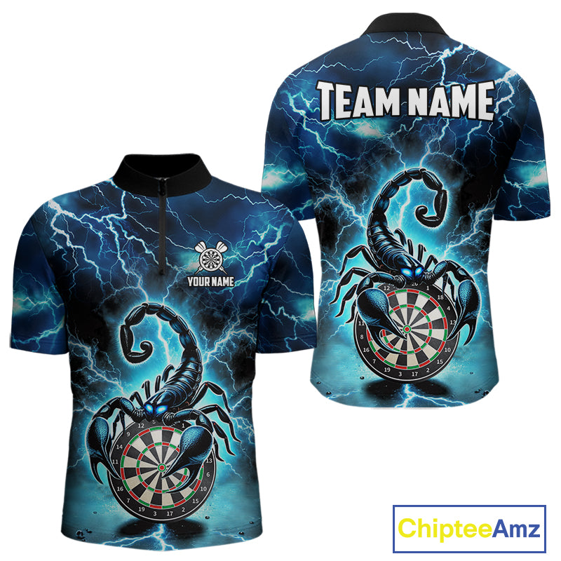 Blue Lightning Thunder Scorpion Darts Shirt Polo & 1/4 Zip For Men Custom Darts League Team Jersey TDM4864
