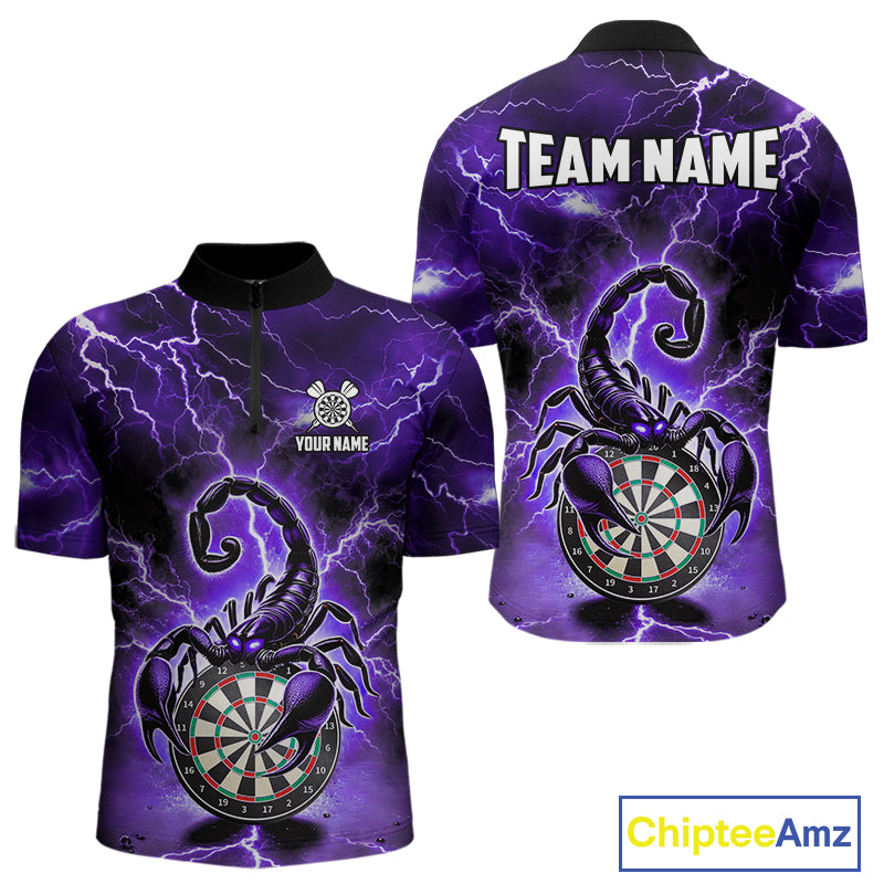 Purple Thunder Lightning Scorpion Darts Polo & 1/4 Zip For Men Custom Darts League Team Jersey TDM4865