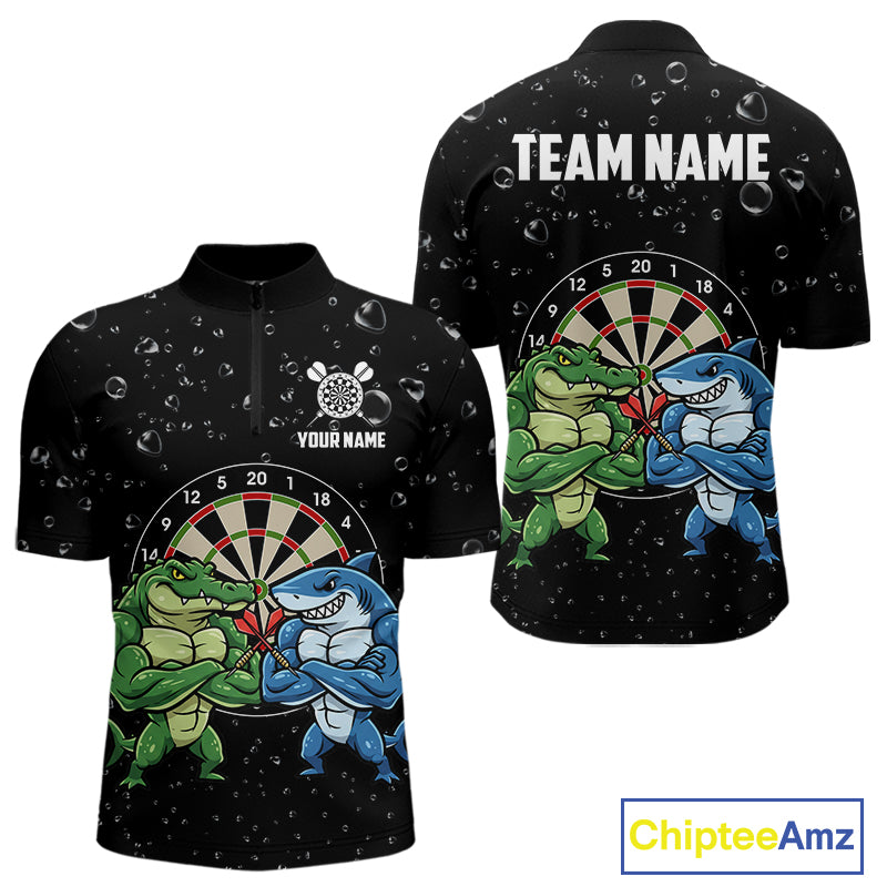Personalized Funny Shark And Alligator Darts Shirt For Men Custom Darts Team Jersey, Darts Gifts TDM4900