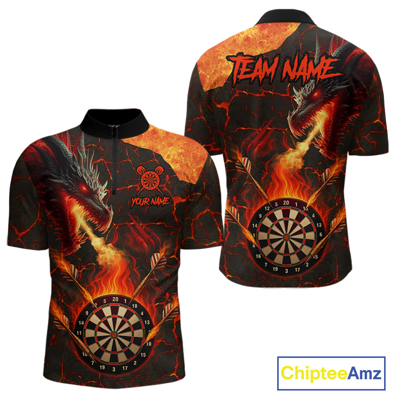 Personalized Fire Flame Dragon Darts Shirt For Men Custom Darts League Jersey Team Polo & 1/4 Zip TDM4902