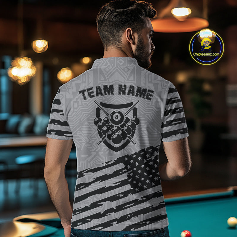 Personalized Grey US Flag Darts Shirt For Men Custom Darts Jersey, Darts Tournament Team Shirts TDM4905