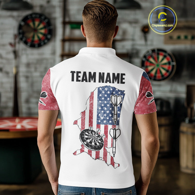 Personalized Grunge American Flag Men's Dart Shirts Custom Patriotic Darts Team Jersey |White TDM4906