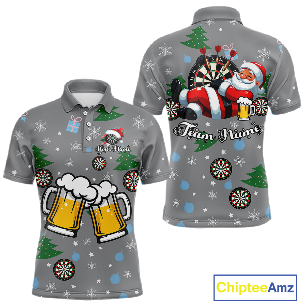 Funny Santa And Beer Christmas Darts Polo & 1/4 Zip For Men Custom Xmas Darts Shirt, Darts Gift TDM4911